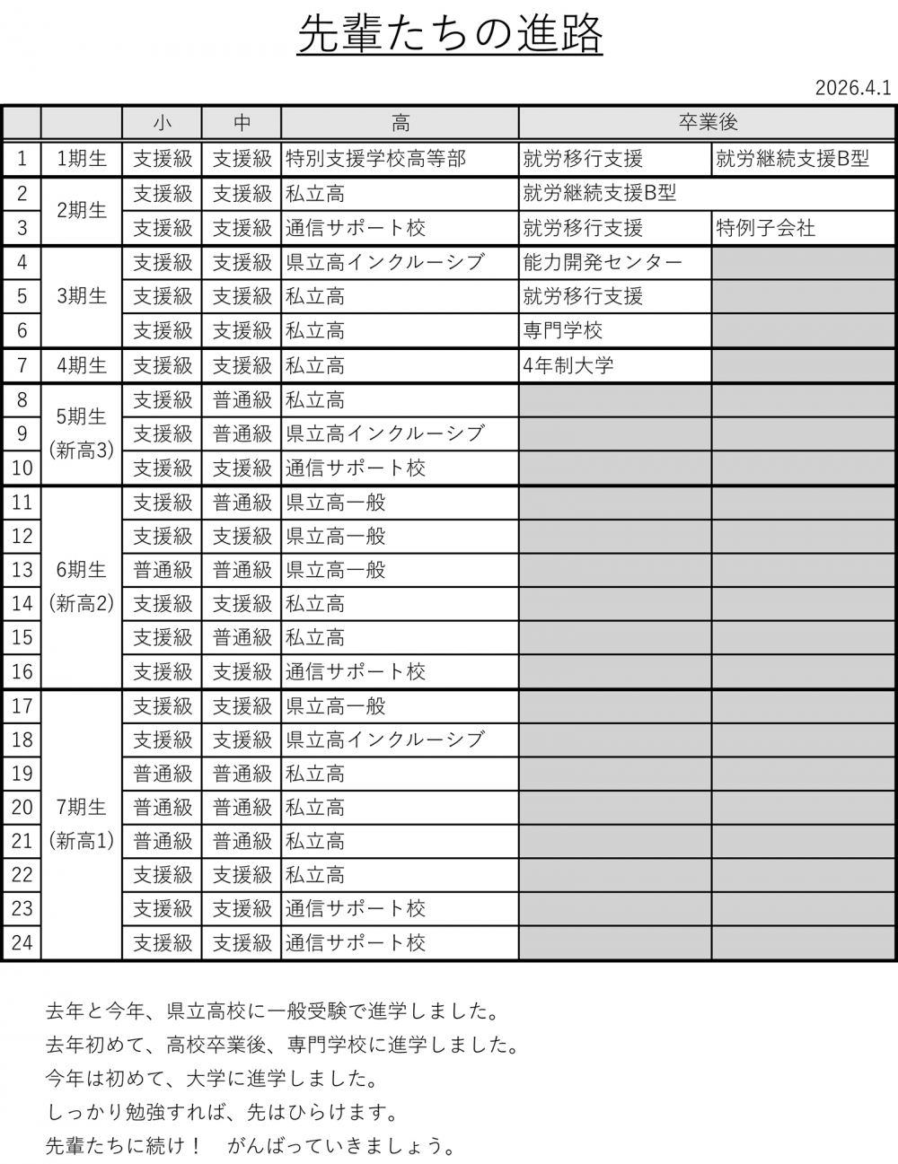 2026/04/06 先輩たちの進路
